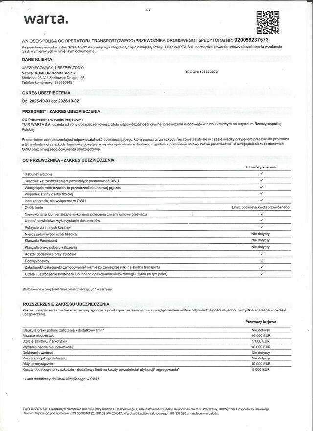 - Kategoria: Usługi / Transport / Przeprowadzki